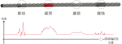 依據模式識別軟件判別鋼絲繩內、外部疲勞、銹蝕、磨損及斷絲等損傷類型。